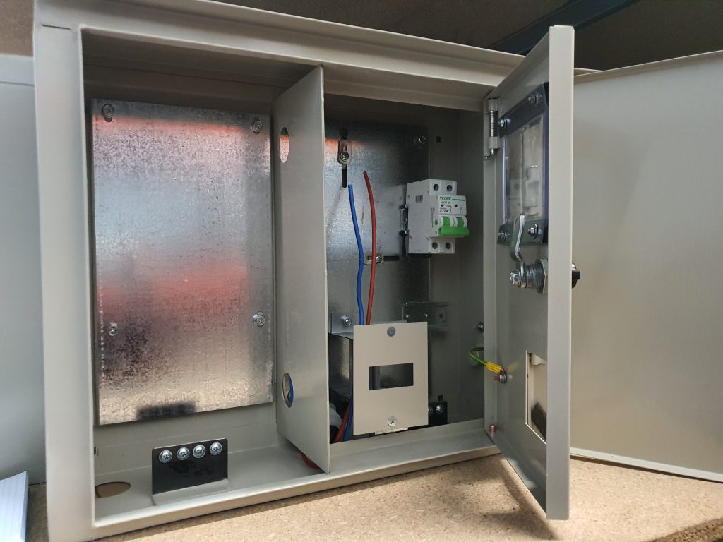 CE90 335mm x 450mm x 175mmCE90K 320mm x 400mm x 165mm1 contor – 220V/50HzSeparator de sarcina 2p/40A CE90U 450mm X 395mm X 150mm1 contor monofazat 220V/50HzSeparator de sarcina 2P/40Aadițional este dotata cu secție pentru distribuție